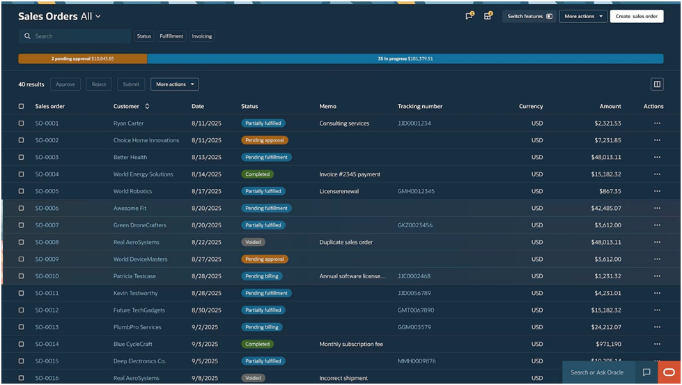 Ask Oracle doesn’t stop at core ERP data. It also acts across customizations and partner extensions built on the SuiteCloud Platform, including those available through the SuiteCloud Developer Network. This ensures a seamless, contextual experience that spans every connected business application.