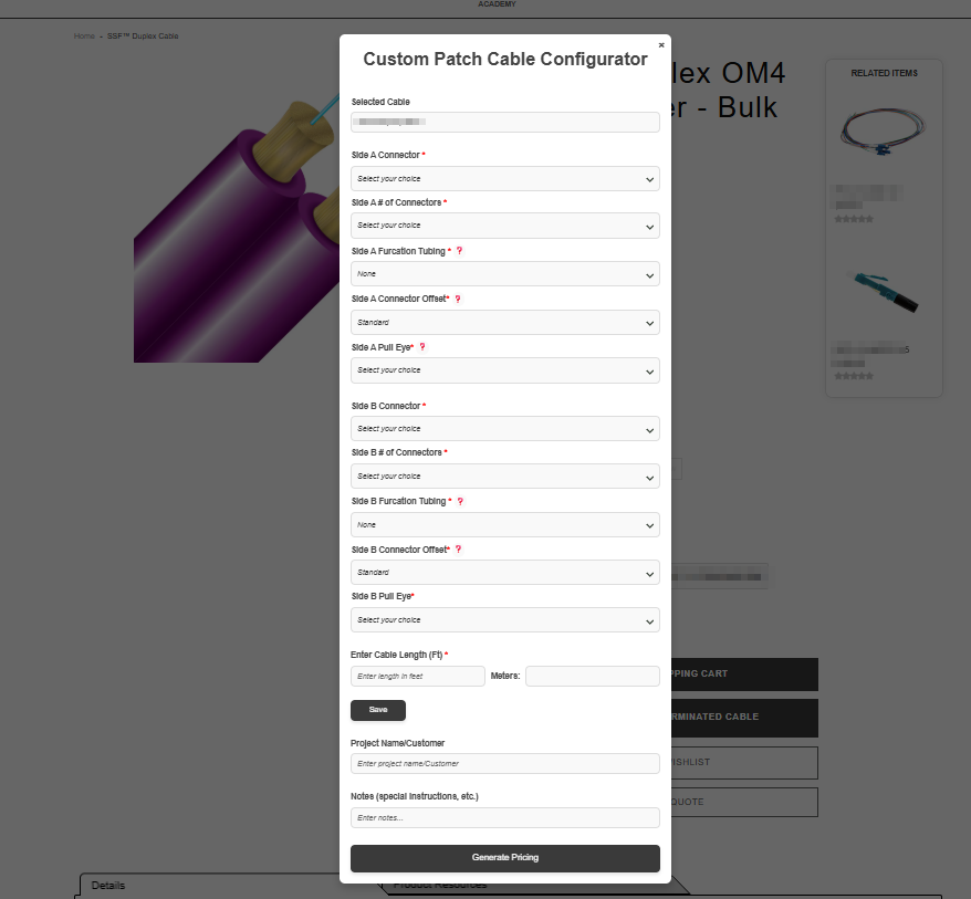 NetSuite SuiteCommerce Advanced Custom Product Configurator for Fiber Patch Cables